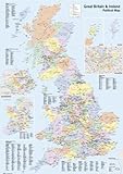 Carte Politique du Royaume-Uni et de l'Irlande Poster Grand Format 64 x 90 cm