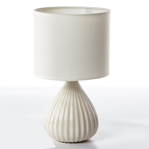 LAMPE DE CHEVET CERAMIQUE 32CM BLANC - 110232Hauteur de la lampe : 32,5 cm Diamètre: 18cm Caractéristiques: Puissance maximale : 40 Watts Alimentation : 230 Volts Ampoule E14 à vis petit culot (non fournie)