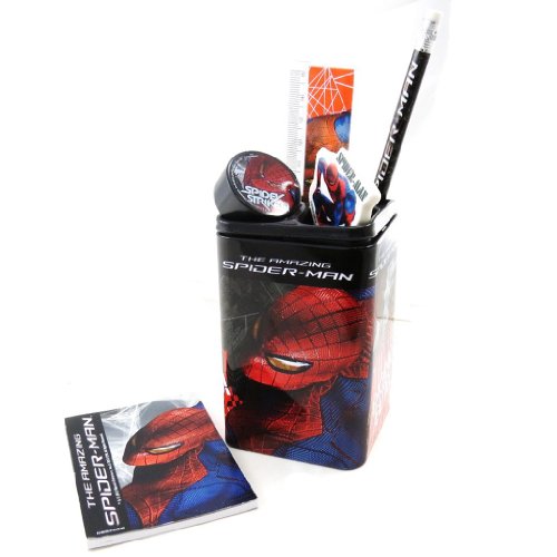 Set scolaire "Spiderman" rouge noir?De quoi motivez nos enfants à l'école avec ce set scolaire "Spiderman" au couleur du héros. Set comprenant un pot à crayons en métal, un crayon, une règle, un taille-crayons, une gomme et une pince à papiers, un carnet. Hauteur totale : 19 cm, pot à crayons : 10. 5x6x6 cm. [Ref. I8511]