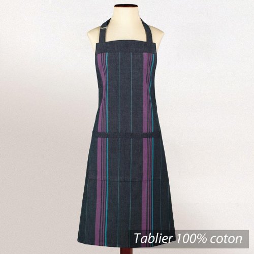Tablier de cuisine femme Cocina - Noir rayures mauve et bleu You can try to find the full description and product details.