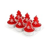 Lot de 6 bougies chauffe plat sapins de noel rougeCe lot de 6 bougies chauffe plat sapin illuminera votre table ou tout autre décoration. Elles mesurent 5,5 cm de haut et 3,6 cm de diamètre. Couleur rouge, blanc.