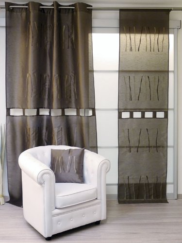 RIDEAU A OEILLETS 140x250 cm KATIA CHOCOLAT Brodé avec Effet Soie Sauvage, Oeillets métal