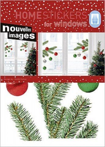 Posters: Noël Sticker Adhésif Fenêtres Autocollant - Branches De Sapin Et Boules (36 x 24 cm)