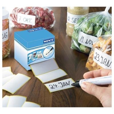 1000 étiquettes pour distributeur?Toujours pratique d'avoir sous la main des étiquettes adhésives pour marquer vos sachets de surgelés ou vos conserves. Grâce au rouleau bien pratique, elles sont faciles à utiliser et se rangent sans prendre de place. Disponible en version 500 étiquettes sans marqueur (Article 08 39 24).